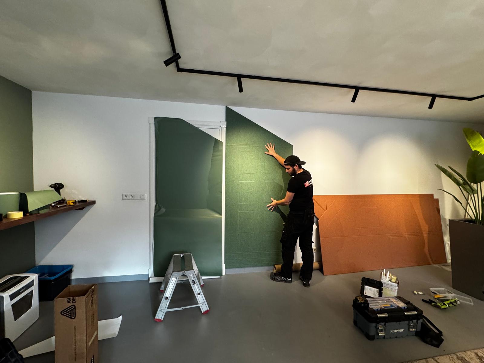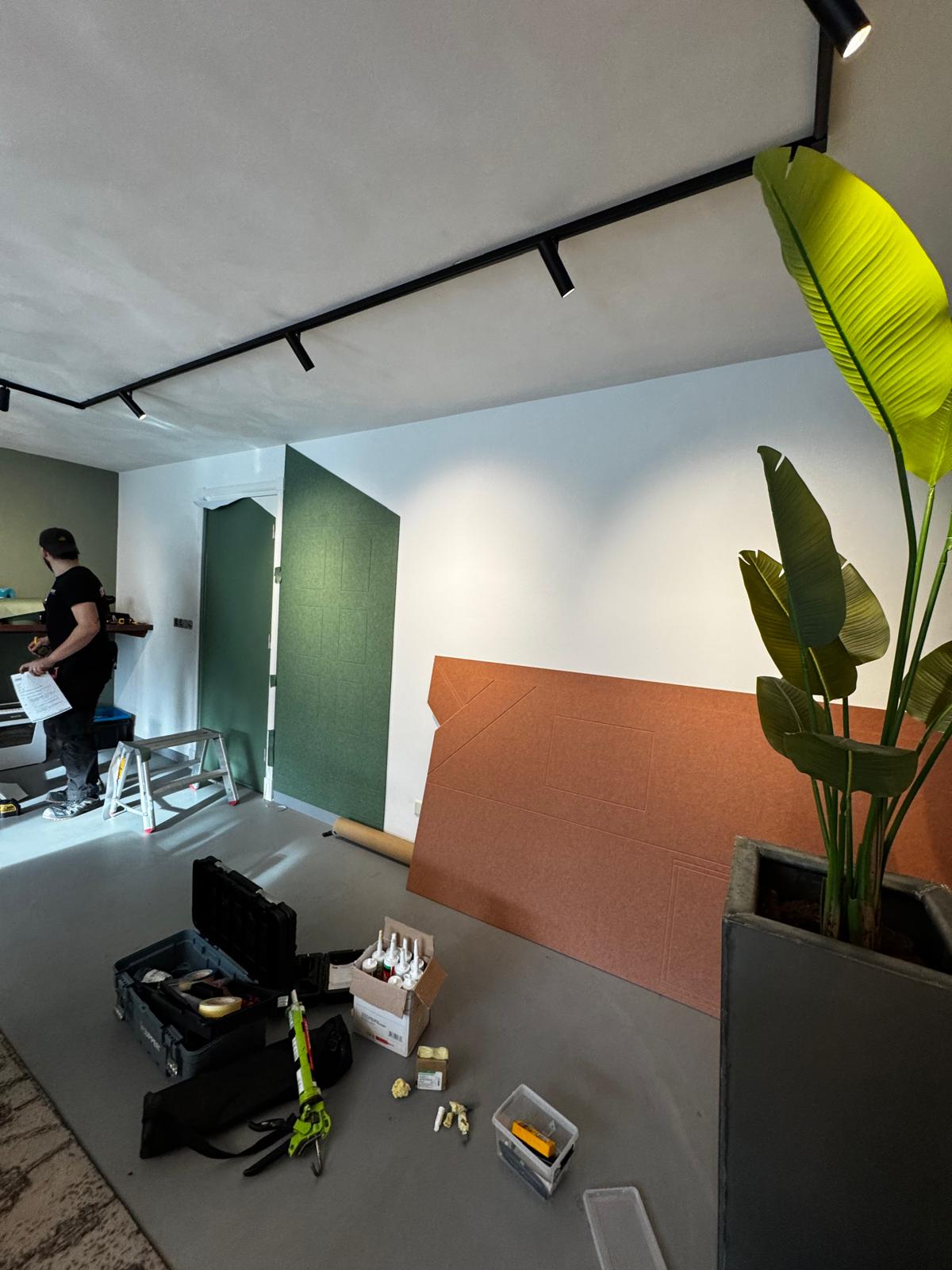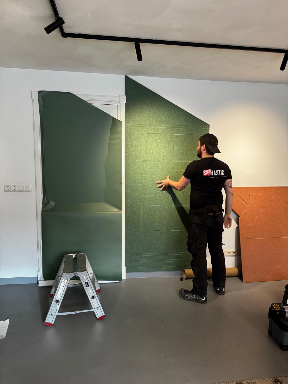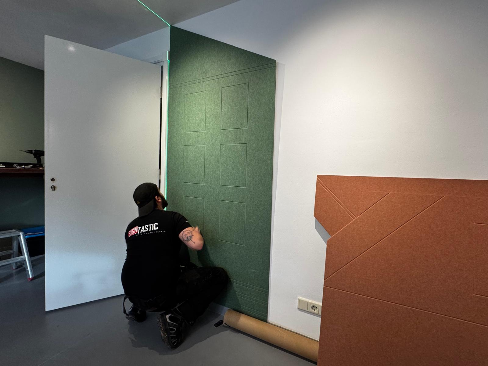 Following a design by Duotone interiors, we were allowed to install these beautiful acoustic wall panels for real estate agency Janssen Steijlen in Veldhoven.